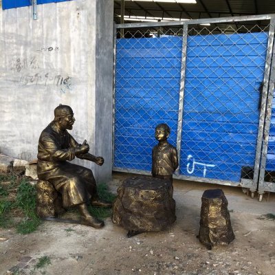 爷孙下棋人物铜雕