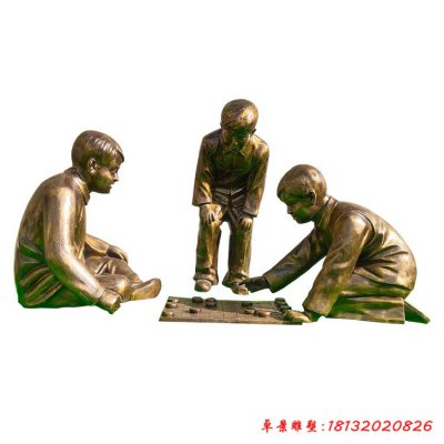 儿童下棋铜雕