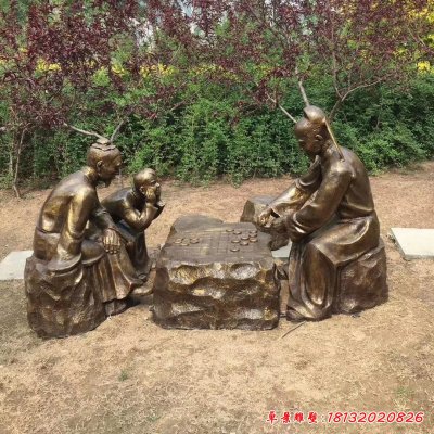 古代下棋人物铜雕