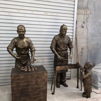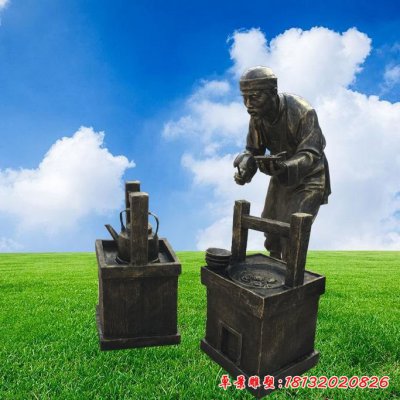 做馄饨的人物铜雕