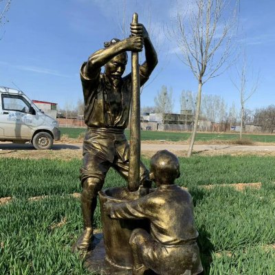 民俗人物打糍粑铜雕