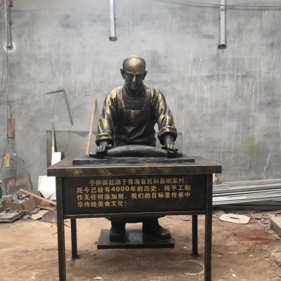 做拉面的人物铜雕