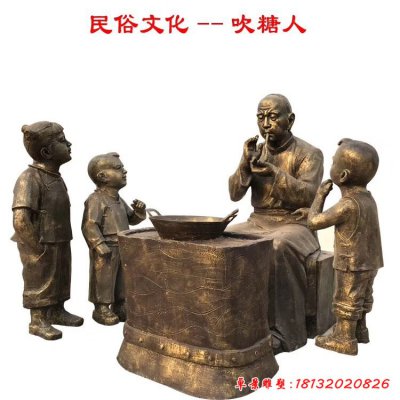 民俗人物吹糖人铜雕