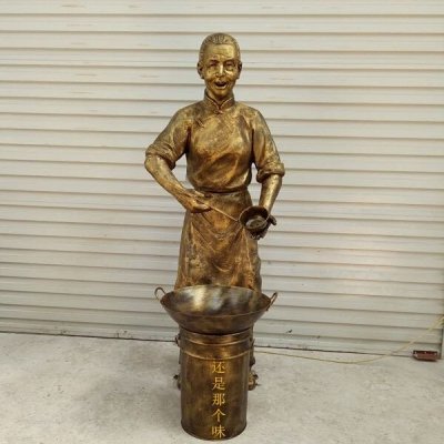美食街做饭人物铜雕