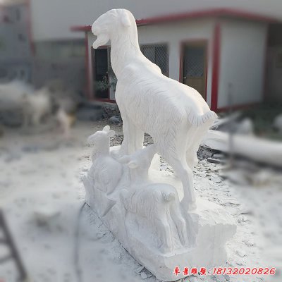 羊在古代与祥相通,祥也可写作吉羊,表示吉祥之意,羊是祥瑞的象征。古人年初在门上悬羊头,交往中送羊,以羊作聘礼,都是取其吉祥之意。因而石雕山羊寓意吉祥。在古人的观念里,羊是美善的象征。《诗经》中有一手首篇名为羔羊的诗,用羔羊比喻品德高尚的卿大夫。《说文》有美与善同义之说。羔羊似乎懂得母亲的艰辛与不易,所以吃奶时是跪着的。羔羊的跪乳被人们赋予了至孝和知礼的意义。《春秋繁露》云:羔食于其母,必跪而受之,类知礼者。