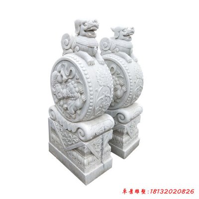 卓景雕塑> 石雕> 园林建筑> 抱鼓石/石门墩> 大理石门墩石鼓