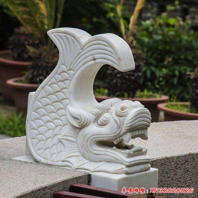 螭吻,其寓意在佛家为护法,有驱凶辟邪的作用。因其性情好望喜吞,人们常把它用作建筑物的装饰,尤以作屋脊镇火的兽头为多。从远古图腾崇拜的演变来看,鱼变成龙是因古代以鱼为图腾的氏族融合到了龙图腾的民族,作为族徽的图腾形象也跟着起了变化,变成了龙头鱼身的鱼龙。鱼龙的形象种类很多,有的龙特征多一些,有的鱼特征多一些。古代有一说法“鲤鱼跃龙门”、“登者化龙”,即渊源于此。后代又把“鲤鱼跃龙门”来比喻科考,考中者即鱼化成龙,民间艺术多以此为题材。